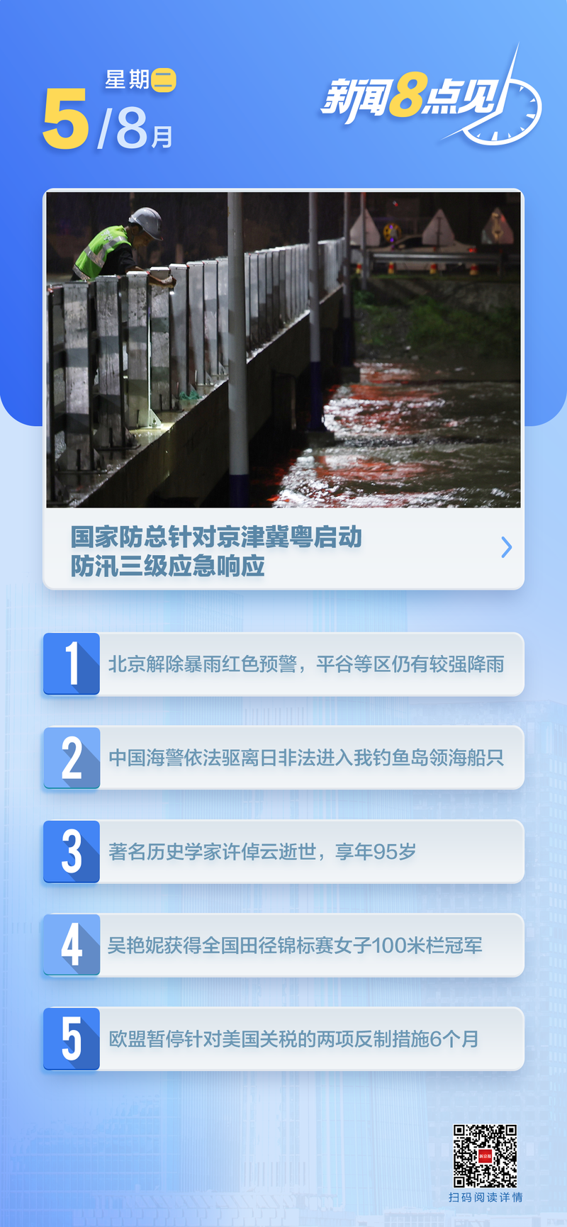 [目前的问题]国家洪水管制总部已向北京,天津,赫比和广东发起了紧急响应。根据“国家紧急洪水管理和干旱的国家计划”以及相关法规,国家洪水管理司令部和干旱救济改善了对预防北京,北京,天津,赫比,赫比和广东在3级的洪水的紧急反应。 (@@紧急管理管理)阅读全文>>>国家洪水管理委员会已将13,000多种救灾材料分配给蒙古内部,以支持洪水和救援管理行动。 8月4日,应洪水管制委员会内政部自治区的洪水管理委员会的要求与国家准备谷物和材料的准备,我们分配了13,000多个中央紧急和灾难。Lief材料(洪水和干旱救济)用于13,000多个中央紧急救济和灾难(洪水和干旱救济),以与国家救济和农业机构结合使用。良好的洪水管理工作和救援行动。 (应急管理部)3月12日的长载火火箭于2025年8月4日于18:21推出了其低轨道卫星。据报道,所有卫星群都由Galaxy Aerospace开发。这是一家私人商业航空公司第一次开发了很多卫星。 (北京新闻)阅读全文>>>中国海岸警卫队办公室的发言人Gangyu,根据法律,驱逐出日本岛上非法进入Diayu岛领土的日本酒吧,进入了8月1日至4日以“ Sanjawan”日本渔船代表的领土。他们警告法律,并将其驱逐出境。 Ziayu群岛及其岛屿属于ChiNA,我们敦促日本人立即停止在水域中的所有非法活动。中国海岸警卫队将继续保护Ziayu群岛领土上法律适用的权利和活动,以保护该国的领土主权和海上权利和利益。 (中国海岸警卫队)菲律宾恳求外国打断中国南部。南部剧院的指挥作出了南部剧院的指挥官天荣格利上校,从8月3日至4日,南部剧院指挥官海军发言人,向中国解放军的南部剧院指挥官海军。他说,他每天在中国进行一次巡游。菲律宾宣布,外国融合了中国南部,并组织了所谓的“合作巡游”,以破坏该地区的和平与稳定。剧院部队继续保持高水平的监视并继续坚定捍卫国家的领土主权和海上权利和利益。中断和在南中国海流行的军事活动正在控制控制。 (南部剧院司令部)中国消费者协会的市场法规和州政府提醒我们:普通食品不相信促进“医疗服务”和“治疗”。最近,国家市场和中国消费者协会的规定共同提醒人们,提醒消费者普通食品不能肯定医疗功能,并不意味着预防和治疗该疾病的影响。不要盲目地相信Spieiad(@oficial Fair)阅读全文>>>著名的历史学家Xu Zhuoyun去世,享年95岁。根据多项测试,著名的历史学家Xu Zhuoyun于8月4日去世,当地时间,当地时间在美国匹兹堡,美国95岁(北京新闻)(北京新闻)(北京新闻)(北京新闻)的全文>>当地>>当地[当地]北部北部北部北部北部北部北部北部北部北部北部。Pinggu,Tongzhou和Daxing在北京仍然有强大的降雨,由于大雨而引起红色警告。现在,影响北京的大雨云正在减弱,向东移动,从而增加了红雨的警告信号。但是,今天早上在Ping,Tonghou和Dachshshunds中下雨很多。考虑到每个地区的灾难警告情况,并采取预防措施做出回应。 (北京气象局)阅读全文>>>北京保险公司在8月4日接受了5,000多起案件,约1.5亿元人民币。卡尤(Cayou)是北京的严重风暴,估计损失为1.54658亿元。其中有3,034例汽车保险案件,估计损失了732.318亿元。 286农业保险事件,估计损失为9644.4亿元。 1,670例农业住房保险,估计损失为49.519亿元。 340其他财产保险案件,估计损失为668.33亿元人民币。统计数据显示,其管辖范围内的保险机构已累积了1,105辆救援车辆。 (新华社)阅读全文>>> [社交]事故第二高速公路上的Changleun建筑项目导致五人死亡。福建安全委员会被包括在内。 2025年7月17日,在福吉地区福吉地区的霍尤市市政当局,基于4号建筑物的4号桥的顶部,造成五名工人死亡。根据相关法规,州政府安全委员会已决定监督对主要事故的调查和惩罚。 (福建紧急事务管理部门)阅读全文>>> [财务]安塔(Anta)回应了锐步(Reebok)将获得的谣言:根据官方信息,市场上有消息称,安塔集团(Anta Group)将很快在品牌艾滋病品牌集团(Authing Authing Brands Group)中获得reebok品牌,并将完成筹款的真实筹款过程。 oAnta Group 8月4日回答:“我们不会对市场的传闻发表评论。我们建议该公司发布的信息获胜。” (北京新闻)阅读全文>>> [体育]并不意味着虚假游戏或游戏操纵。中国足球联合会已针对专业足球专业人士发布了行为准则。为了展示一种新的职业足球风格并创造了清洁和垂直行业的学科,中国足球联盟和几个职业足球俱乐部联合会共同发起了“专业足球专业人士的行为守则”。 (中国足球联合会)阅读全文>>> AFC:Shandong Taishan已被停职两年,从AFC冠军联赛退休,并因其位于马来西亚首都吉隆坡的总部而被罚款,并在第四次声明中发表了一份声明。上个赛季中期从亚足联冠军联赛退休的赛季将被罚款机智h USD 50,000。 (新华社)阅读全文>>> Wu Yangni在国家田径冠军赛中赢得了100米女障碍。 2025年的全国田径锦标赛最终于4日晚上在Zhiang的Quzhou最终。 (新华社新闻社)[国际]欧盟在六个月内暂停了针对美国关税的两项措施。在第四个当地小时里,记者得知欧洲委员会的发言人在同一天表示,他已经达成了欧盟与美国之间的协议。 (CCTV新闻)特朗普:印度的利率将在8月4日,当地时间,美国总统发表在“真实的社会”社交网络上,印度不仅购买了大量俄罗斯石油,而且还出售大部分公开市场以获得丰厚的利润。因此,它将大大增加R印度向美国付款。 (CCTV新闻)Peskov:Putin愿意在为专家组准备工作后与Zelensky见面。 8月4日,